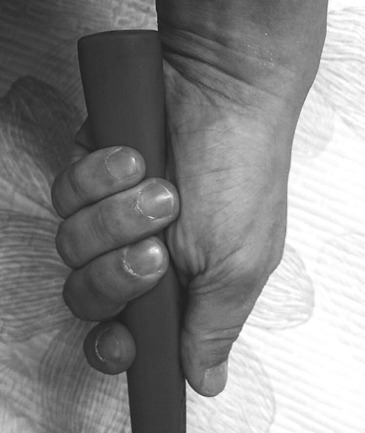 | 엄지 손가락에 힘을 100%에 가깝게 준다 | 엄지 손가락의 힘은 0%에 가깝에 붙여만 준다 |