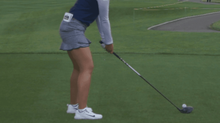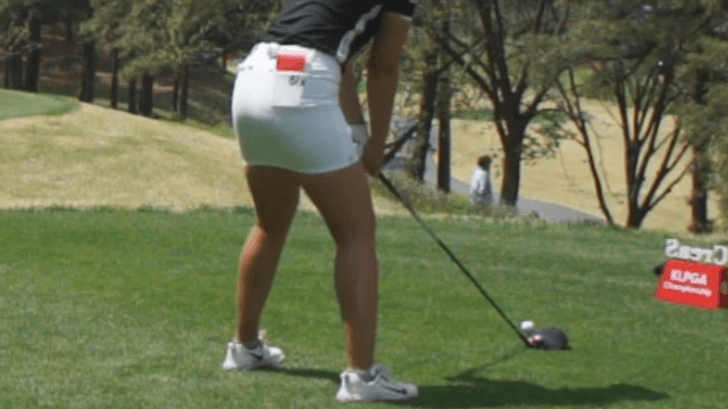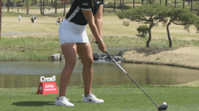 위의 이정은 6 프로의 드라이버 스윙움짤을 보시면 백스윙 탑 직전에 오른쪽 허벅지에 힘이 들어 가는 것이 보이실겁니다. 좀 더 자세히 볼수 있도록 편집을 좀 해보겠습니다.