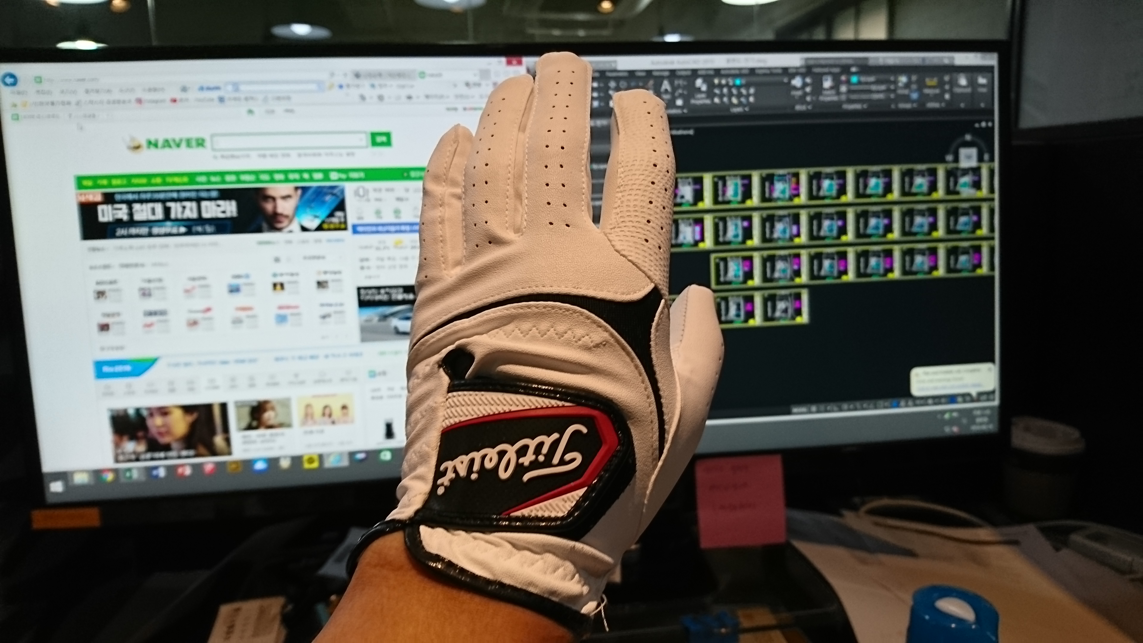 한 동안 장갑 때문에 스트레스를 받아가, 어느 날 타이틀리스트 매장을 갔습니다. 그런데 그 때 슈퍼 그립이라는 장갑을 특가로 판다고 쓰여 있었고, 장갑에 목이 마르던 저는 뭐 밑져야 본전이니까 호수를 말하고 직원이 준 장갑을 끼고 아이언 그립을 잡는 순간 감이 오더군요. '이거다. 이게 아니면 안 된다.'라고 말이죠. 다른 그립은 잡아 보지 못했습니다. 그냥 고무그립만 잡아 봤는데요. 거짓말 조금 보태서 골프채 그립과 하나가 되는 듯하게 쫀득쫀득하게 달라붙습니다.