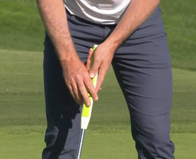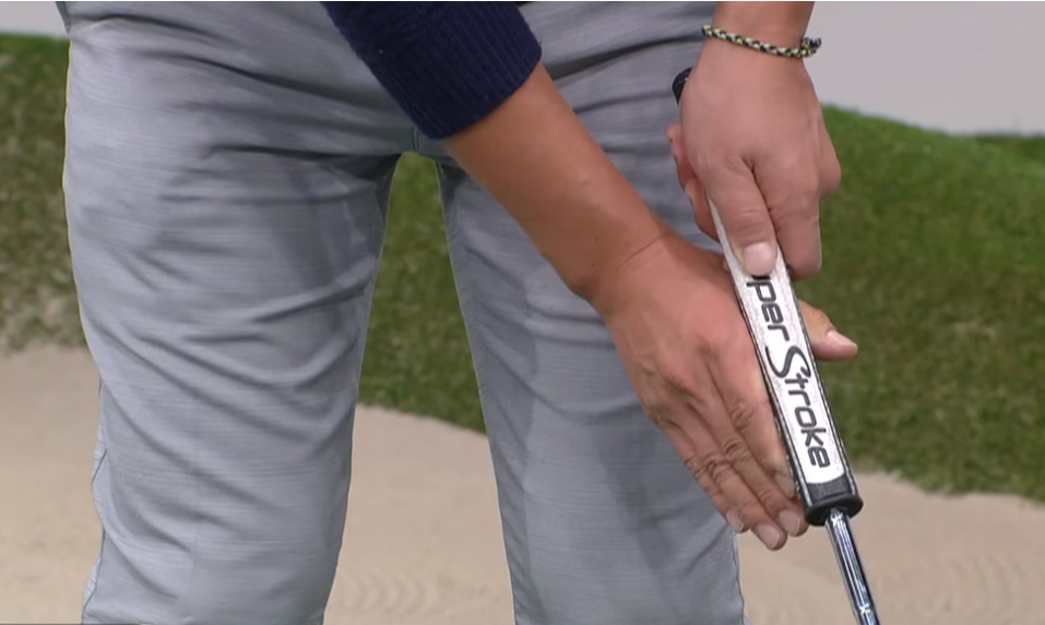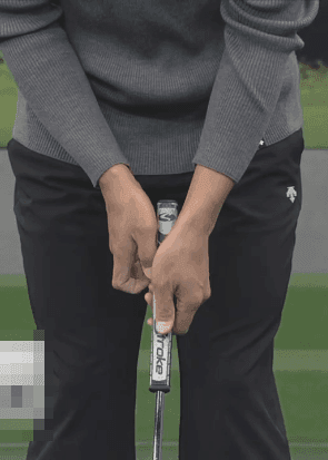 이 퍼팅 그립은 먼저 왼손으로 퍼터의 그립 상단부를 꽉 잡습니다. 그리고 퍼팅을 왼손으로만 하면 극도로 좋은 방향성을 얻을 수 있지만 아주 많은 훈련이 필요 합니다. 그래서 왼손으로만 퍼팅하는 느낌을 최대한 살리면서 실수 하지 않기 위해 오른손을 살짝 왼손 아래 부분에 오른손을 걸쳐서 왼손의 스윙 궤도를 보완만 해주는 그립을 집게 그립이라고 하는데요. 이 때 왼손을 보조하는 오른손이 집게 모양 같다고 하여서 집게 그립이라고 합니다.
