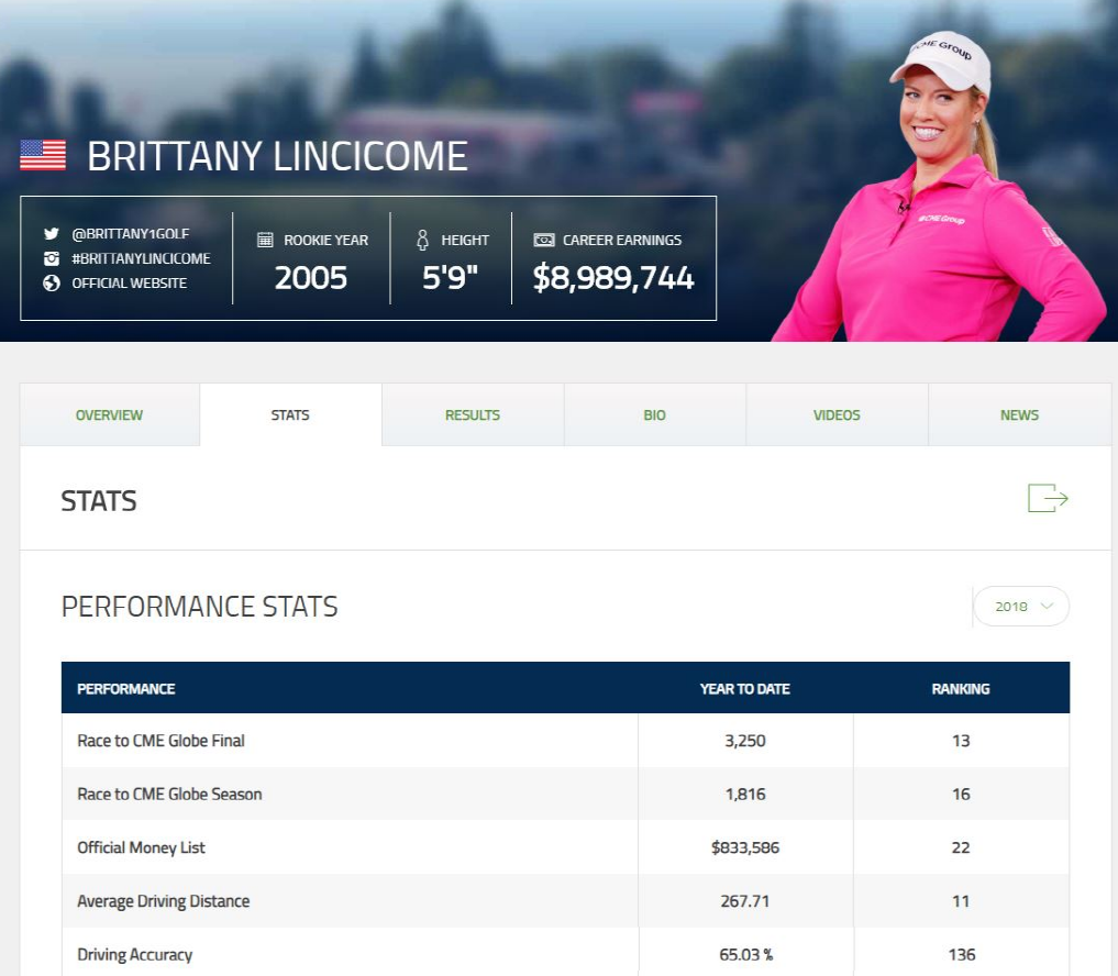 2005년에 입회해서 현재까지 약 900만$의 상금을 받았고요. 위에서 보신대로 클럽을 많이 들고 드라이버 스윙을 하는데 평균 캐리거리가 267.71야드 입니다. LPGA에서 11위네요.