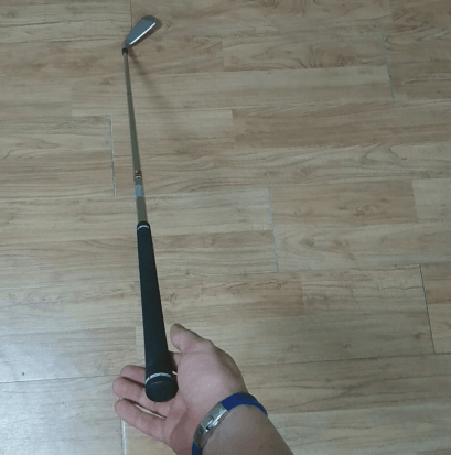 위의 움짤은 3번 아이언을 아무런 장치를 하지 않고 그립 밑에 손가락만 받친 후 위로 들어 올리는 것입니다. 처음에 누워 있던 클럽 헤드가 점점 일어나면서 타겟과 스퀘어를 이루는 것을 알 수 있습니다. 현장에서 매번 이런 방법을 쓰긴 어렵습니다. 연습장에서 연습하실 때만이라도 감으로 아이언과 볼의 거리를 맞추지 마시고 위와 같이 클럽을 들어 올려서 맞추는 버릇을 들이시기 바랍니다.