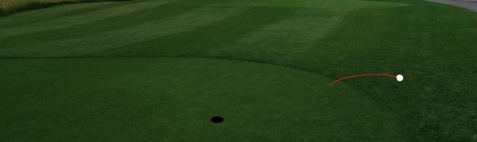 지금까지의 경험으로 보면 대략 5m 거리까지는 에이프런에서 퍼터 찍어치기는 평소 그린에서 보는 거리와 똑같이 보면 되었었는데요.