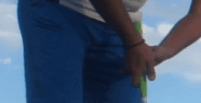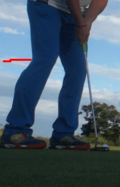 위의 움짤 중에서 빨간선을 그은 무릎 뒷쪽을 보시면 어드레스부터 볼을 치기 전까지 거의 움직이지 않는 것을 보실 수 있습니다. 우리 아마추어 골퍼가 의외로 실수 하는 부분이 퍼팅할 때 하체의 미묘한 움직임은 신경 쓰지 않아서 하체가 움직이면서 퍼팅의 거리감 보다는 방향성에서 미스를 하는 경우가 있습니다. 양쪽 발가락으로 골프화 깔창을 누르는 정도만 힘을 주시면 탄탄한 하체로 방향성을 잡을 수 있습니다.