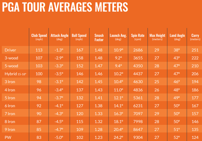 | 클럽 | 스윙스피드(m/s) | 볼스피드(m/s) | 캐리거리(M) |