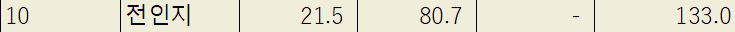 | 전미정[12] | 5.1 | - | 131.1 | 126.1 |