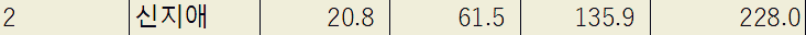 | 신지은[21] | 0.2 | 69.6 | - | 91.5 |