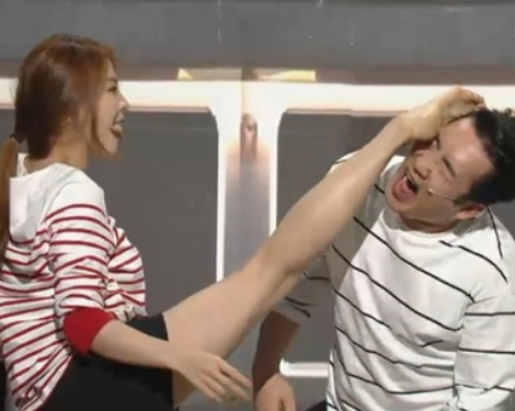 예전에 KBS에서 체조선수 신수지가 '개콘'에 나와서 희극연기를 하다가 파트너의 얼굴에 유연한 발따귀를 날린 적이 있습니다. 사진을 검색해서 가져 왔는데요.