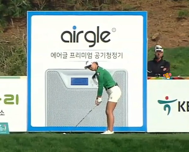또한 좋아하는 프로골퍼 스윙을 카메라에 담고 싶은 분 있으실 겁니다. 그런데 일단 스마트폰 카메라는 찰칵 소리가 나니까 소리 나지 않는 동영상으로 찍고 스윙도 보고 캡쳐해서 사진도 보시는 방법을 추천 드리고요. 스윙 찍는 포인트는 아래 사진 처럼 스폰서 광고판 위에 사진기를 올리는 것입니다.
