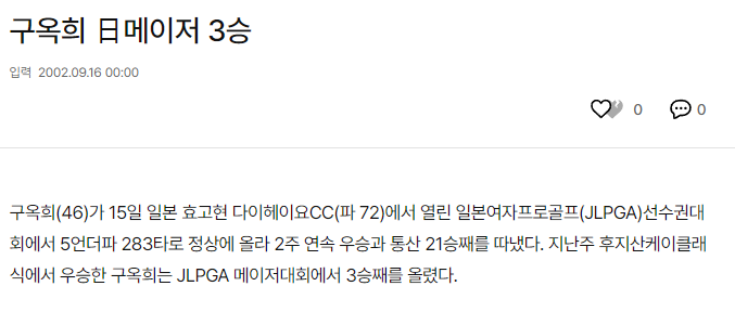 하지만 무슨 이유인지는 모르겠지만, JLPGA에서만 총 23승을 거둔 구옥희 프로님의 상금액수 및 순위는 기록되어 있지 않아서 신문을 검색해 보니