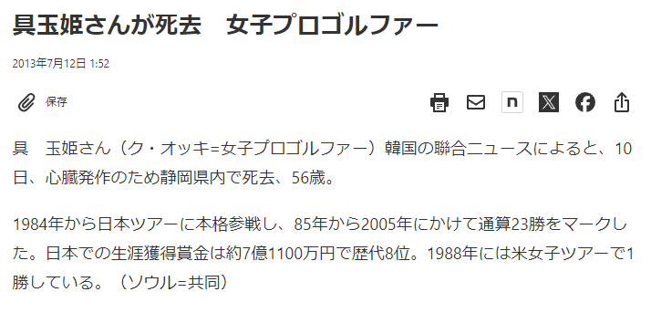 일본경제신문을 찾아보니 구옥희 프로님이 JLPGA에서 수령한 역대상금 액수는 7억 1100만엔이네요~ 대단합니다.