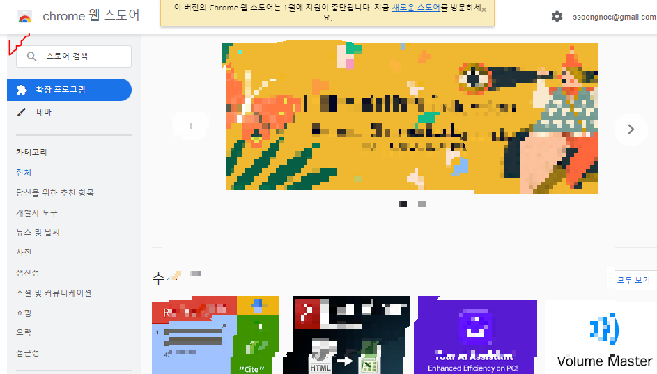 3. 아래와 같은 크롬 웹스토어 창이 뜹니다. 거기서 좌측 상단을 보시면 '스토어 검색'이라는 창이 있는데요.