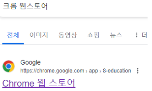 2. 아래 처럼 '크롬 웹 스토어' 라고 검색을 해서 검색창에 나타난 'chrome 웹 스토어(=크롬 브라우저 서드 파티 모음 사이트)를 클릭해서 들어갑니다.