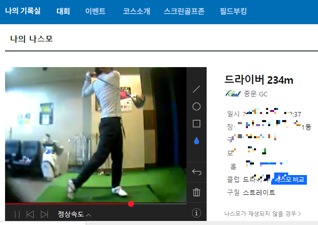 9. 구글 크롬 브라우저에서 골프존 사이트로 로그인합니다. 나의 기록실 > 나의 나스모로 가서 다운로드하고자 하는 나스모를 클릭해 줍니다. 아래와 같이 나스모가 무한 반복되는 창이 열릴 텐데요.