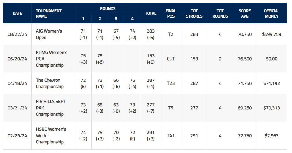 | 09.06.25 | LPGA | 웨그먼스 LPGA | $300,000.00 |