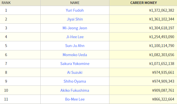 | 31 | 키무라 아야코 | 21,261,022 | 243,165,219 |