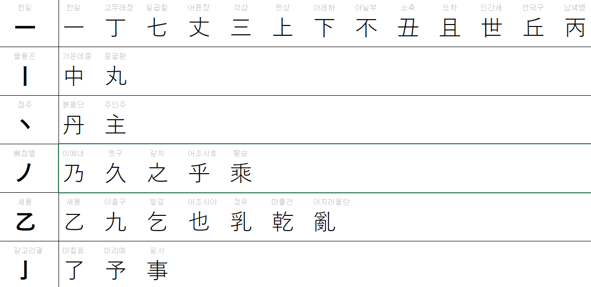 음 추가로 부수별 한자표(엑셀) 파일도 올리겠다. 공부 바짝 하즈아~ 윗주로 음훈을 달아 놨다. (아무리 찾아도 윗주는 일본어는 자동으로 달리는데, 한글로는 분리하는 방법은 있지만 자동으로 다는 기능이 없드아. ㅜㅜ)