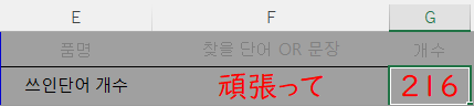 엑셀 E~G열 1~2행을 보면 본인이 찾고자 하는 단어나 문장을 넣으면 대사에 쓰인 갯수가 나오는 함수를 넣어 놨다. 물론 일본어 대사뿐만 아니라