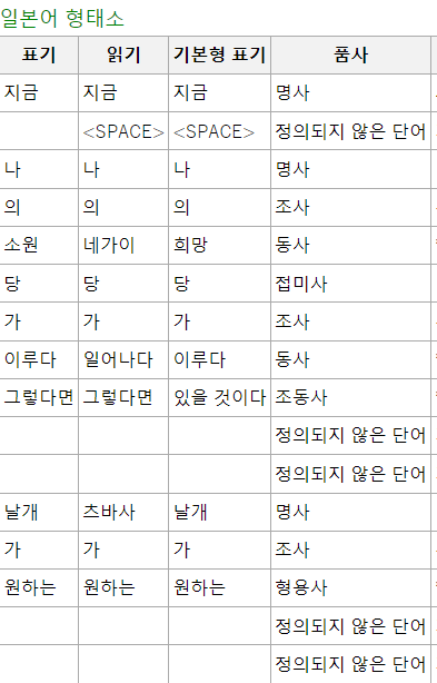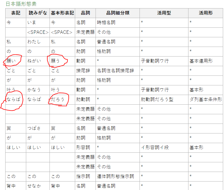 검색 창에 위와 같이 일본어를 복사> 붙여넣기를 한 후(1만자까지 분석 가능)에 우측 밑에 '해석'을 눌러 주면 아래와 같이 형태소 분석이라고 나오는데 아래 쓰인 것 중에 '願い’라는 동사는 '願う'에서 변형된 동사임을 알 수 있고, ’ならば'는 'ならう’ 에서 변형된 조동사임을 알 수 있다 . 일본어 사이트이긴 한데 그냥 보자, 원하는 정보 얻기에는 큰 무리가 없다.