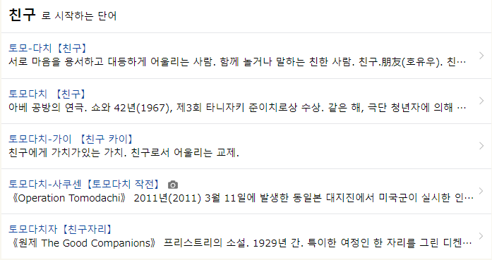 4. 일본어 사전 - 쿠 사전 - 일본어 사전인데 좋다. 가끔 네이버 사전에서 모른다고 하는 단어를 찾을 때 좋은데 전체가 일본어이긴 하지만 찾는 단어 검색 후 한글로 변환하면 정확한 뜻을 찾기에 좋다.