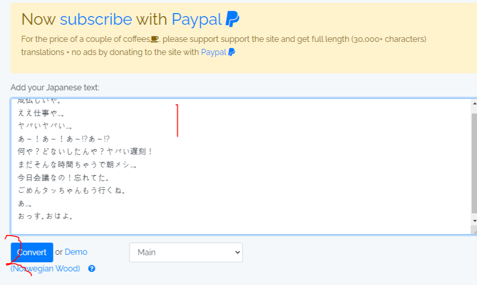 일본어를 Add Your Japanese Text에 붙이거나 타이핑 후 컨버트를 누르면