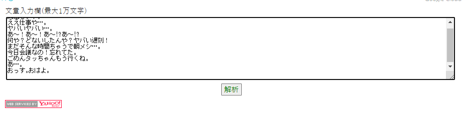 日本語形態素解析サービス 無料ツール | オープンポータル