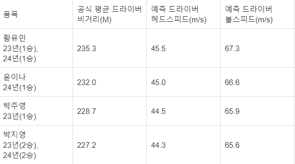 | 박민지 23년(2승), 24년(1승) 220.9 |