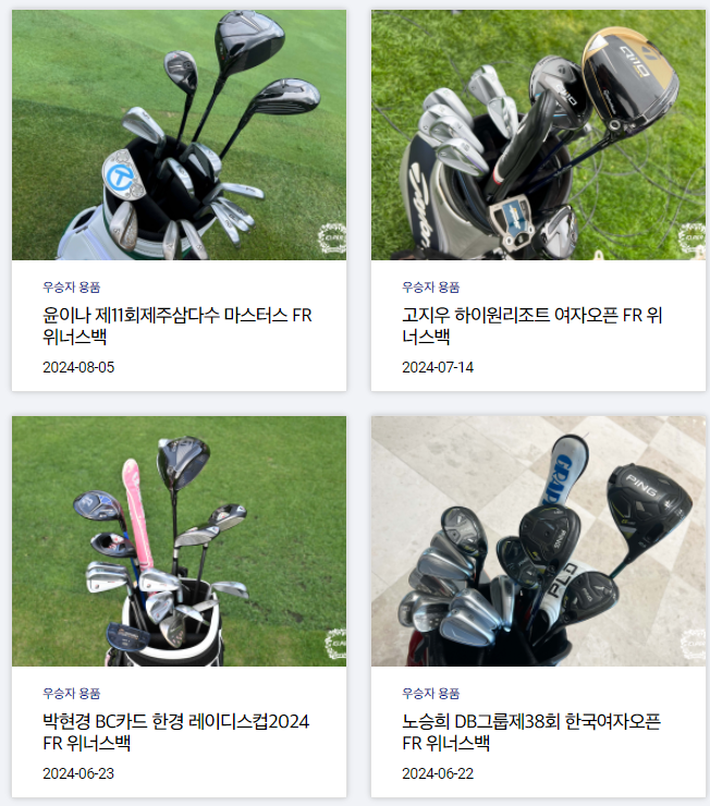 KLPGA 홈페이지에 '위너스백'이라고 검색을 하면 2023년 첫 경기부터 현재까지 대회에서 우승한 선수(1승~6승까지 차지한 선수 총 24명)의 골프 클럽을 소개하는 페이지가 나옵니다.