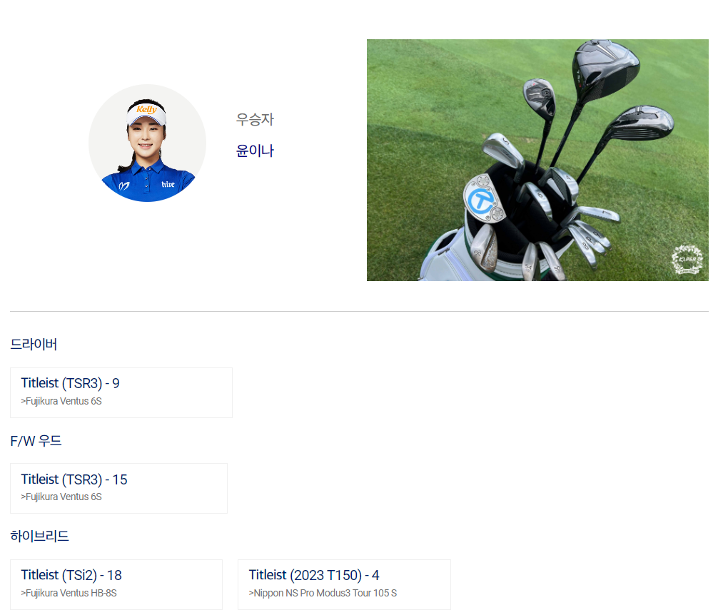 KLPGA 홈페이지에 '위너스백'이라고 검색을 하면 2023년 첫 경기부터 현재까지 대회에서 우승한 선수(1승~6승까지 차지한 선수 총 24명)의 골프 클럽을 소개하는 페이지가 나옵니다. 이번 글에서는