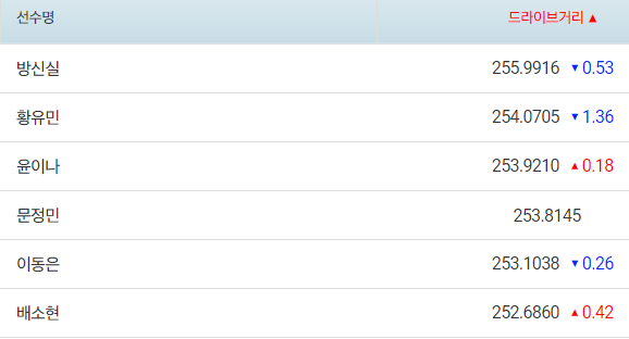| 드라이브 거리 | 252.9야드 | 5 |
