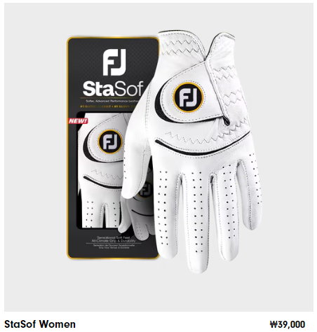 골프 장갑은 풋조이 StaSof Women(스타소프 위민-손바닥 양가죽, 외피 합피) 제품을 사용하는 것으로 보입니다.
