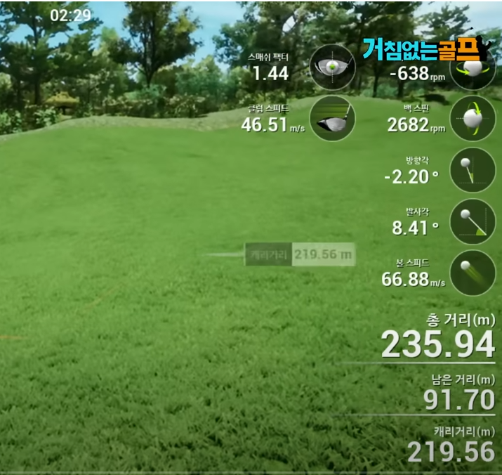 2. 드라이버 헤드스피드 44.3 ~ 44.8 m/s, 볼스피드 65.6 ~ 66.3 m/s . 비거리 227.2M ~ 230.8M