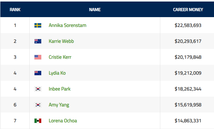 (위의 5명의 프로골퍼가 LPGA에 진출해서 10승 이상을 기록한 엄청난 선수들입니다.