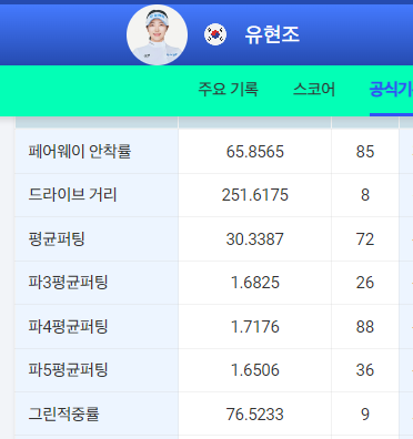 | 파4평균퍼팅 | 1.7개 | 77 |