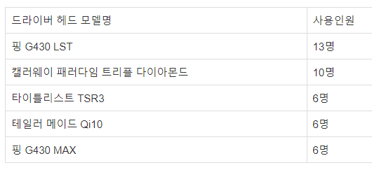드라이버 헤드를 조사해 보니 KLPGA 및 LPGA 우승 경력이 있는 프로골퍼 73명 중에서 핑 G430 LST 드라이버를 13명, 핑 G430 MAX를 6명이 사용하더군요.