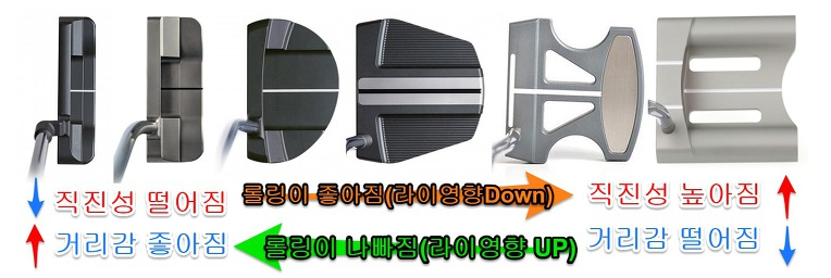 위의 퍼터 사진을 보시면 유현조 프로가 사용하는 퍼터는 좌측에서 두 번째 형태의 퍼터입니다. 최근에 KLPGA 던 지 LPGA던지 전통적인 퍼터 스타일인 블레이드 퍼터는 거의 사용하지 않고 유프로처럼 스퀘어 백 또는 말렛형을 많이 사용하는 경향이 보이고 위의 사진에서 4~6번의 형태는 거의 쓰지 않습니다. 퍼터만큼은 본인이 좋아하는 브랜드 및 모델로 쓰면 되겠습니다.