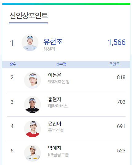 | 신인상포인트 | 1566점 | 1 |
