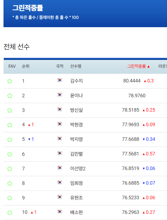 | 파3그린적중률 | 76.9% | 9 |