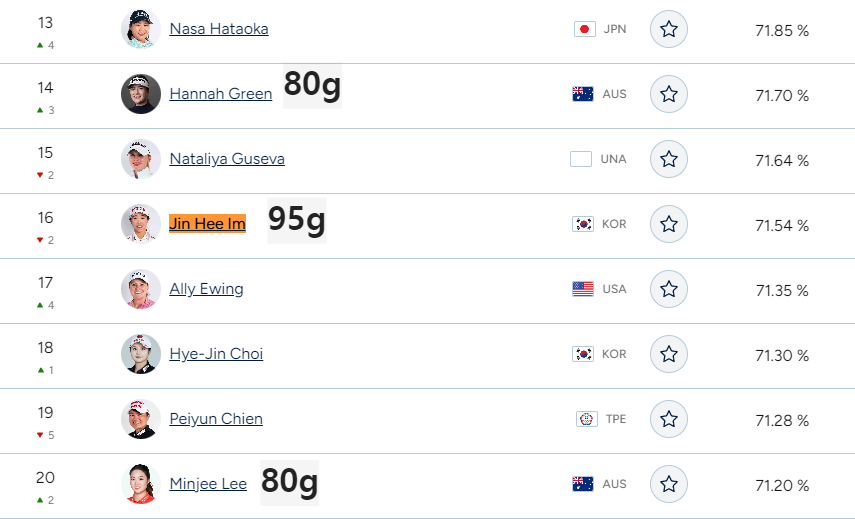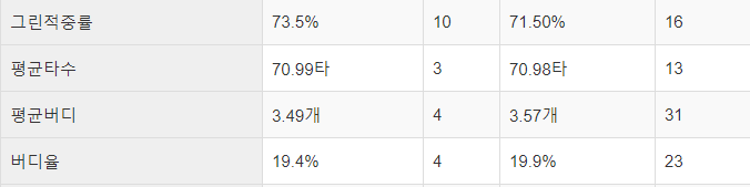 | 그린적중률 | 73.5% | 10 | 71.50% | 16 |