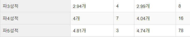 | 파3성적 | 2.94개 | 4 | 2.99개 | 8 |