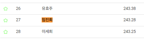 | 톱텐 피니쉬율 | 43.3% | 2 | 25.0% | 19 |