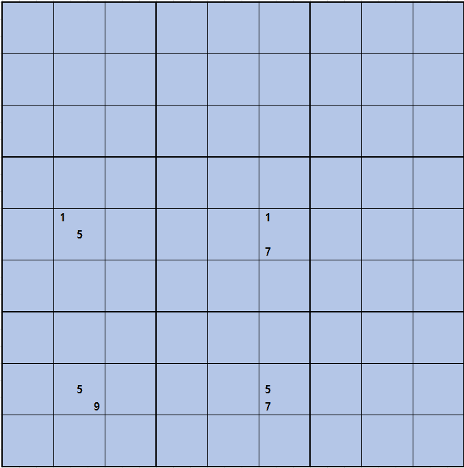 이번 글에서는 스도쿠 고급 공식인 X, XY윙 공식에 대해 알아보겠다. 중급 레벨의 스도쿠의 경우..