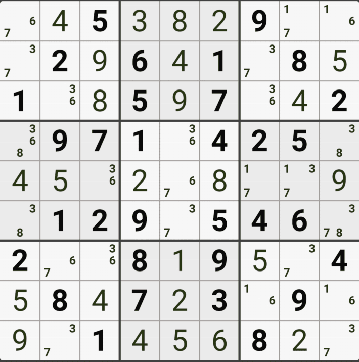 음. 이제는 스도쿠 공부가 일단락이 되었다. 다 안다는 뜻은 아니고, 이제 기본공식들에 대한 이해가 된 거 같다. 고급기술로 나아가기 전에 좀 더 기본공식에 익숙해 지면 좋겠다는 생각을 했고