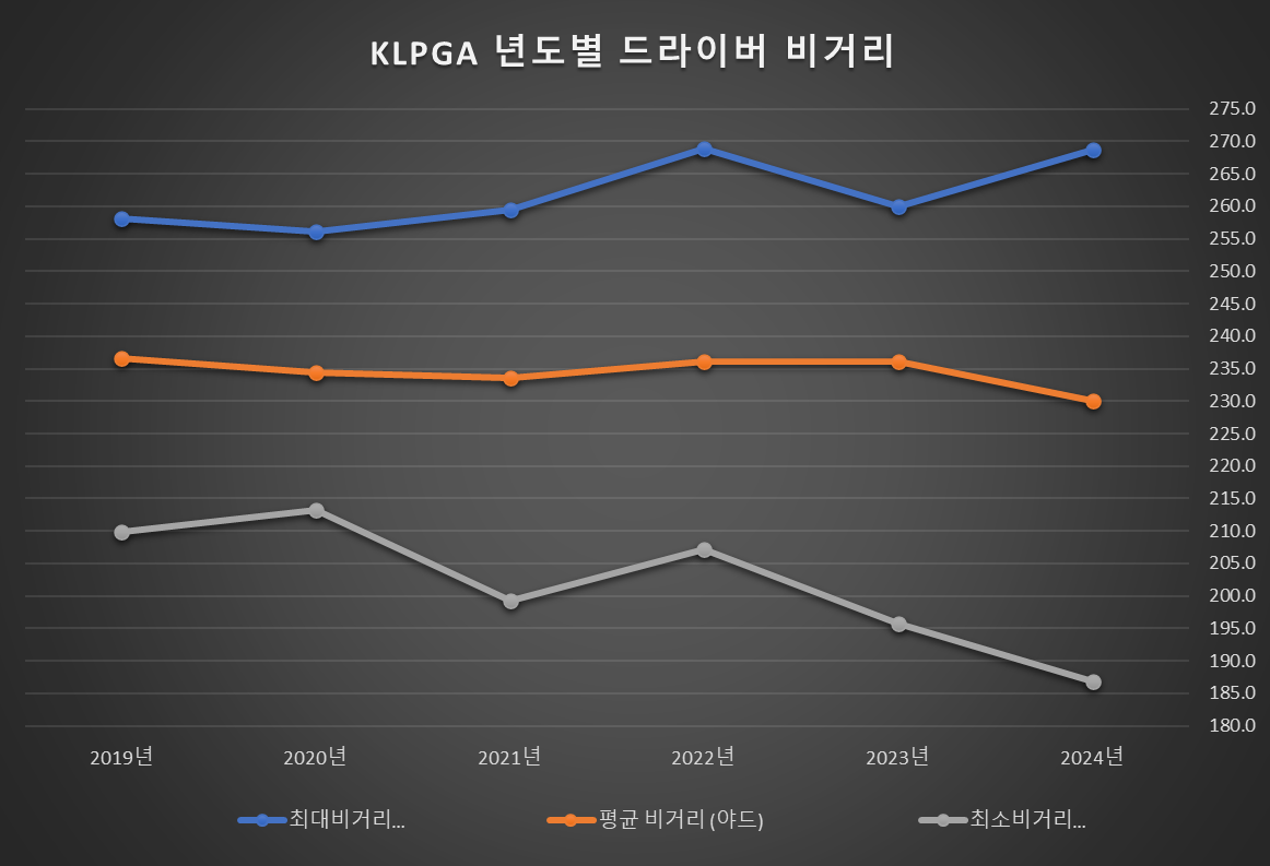 KLPGA 23, 24 시즌에 우승한 선수 25명 중에서 보면 한진선 프로 드라이버 비거리가 22번째로 밑의 비거리를 가진 위너는 서연정, 최은우 프로가 있다. 음 이런 말이 좀 의미가 없는 것이 18번째가 19승 박민지 프로긴 하다.
