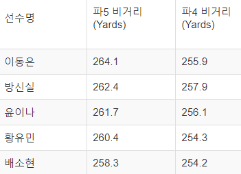 | 선수명 | 파5 비거리 (Yards) |
