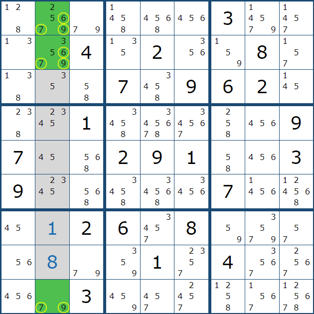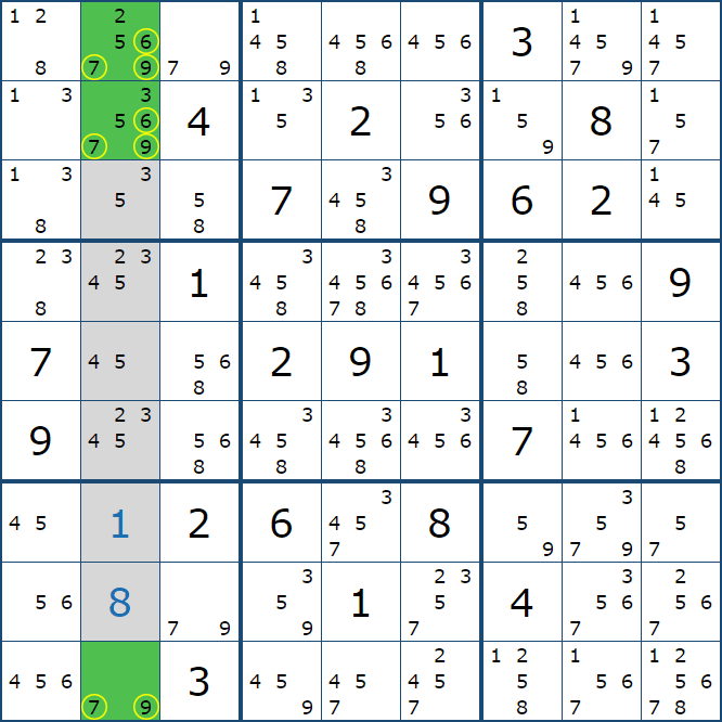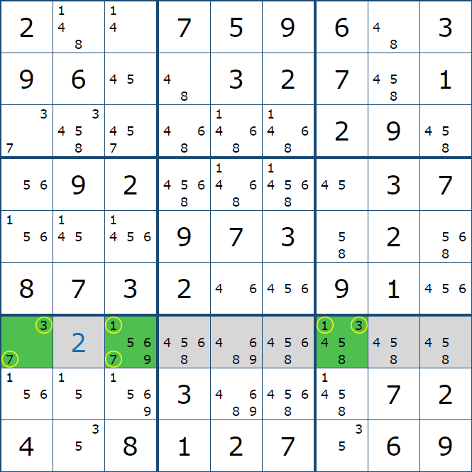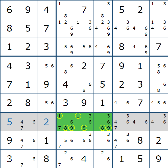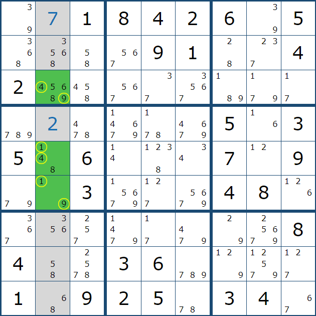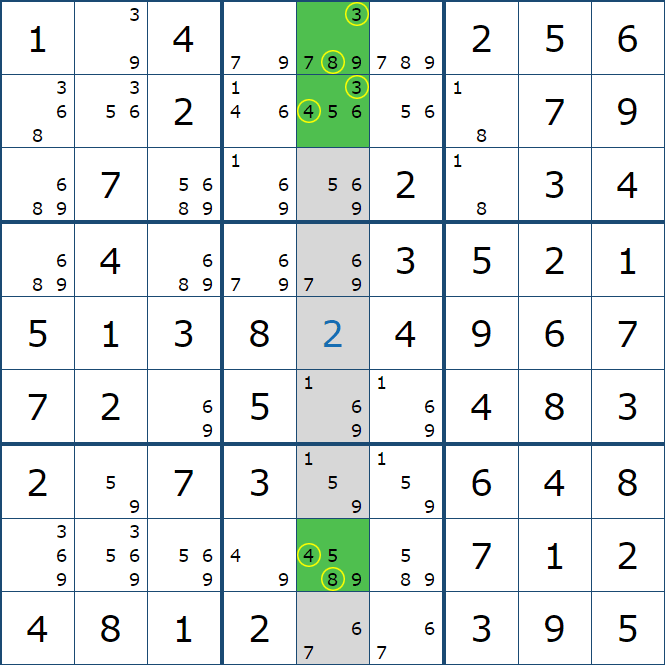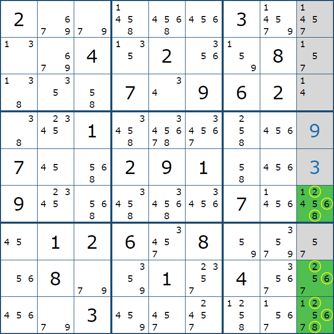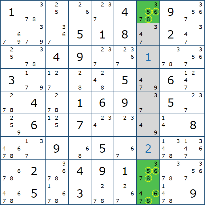 사례도 적은데 히든 페어와 묶지 않고 따로 포스팅을 하는 이유는 고급 문제에서 막혔을 때, 이 히든 트리플이 키 역할을 하는 경우가 자주 있기 때문이다.