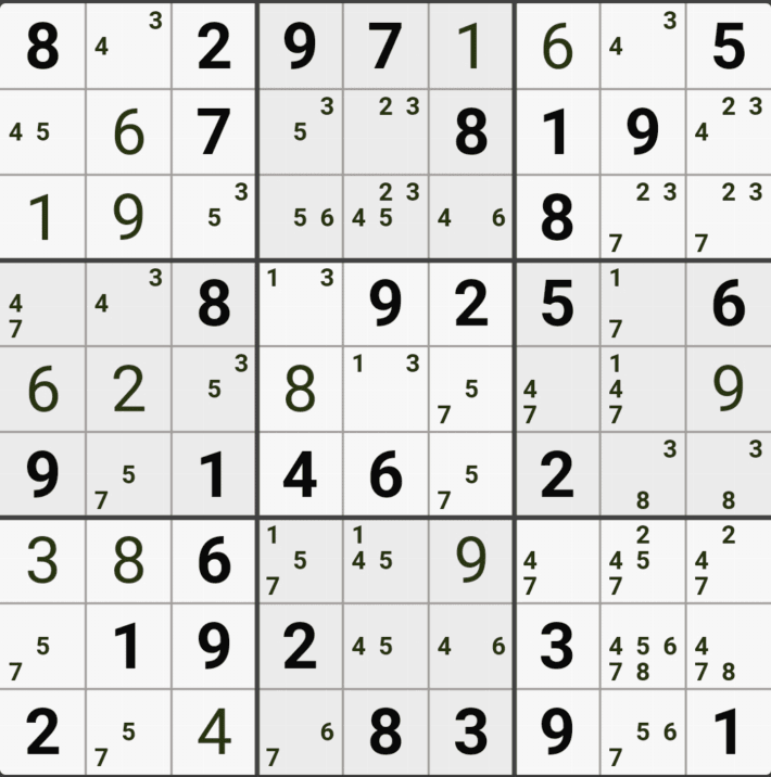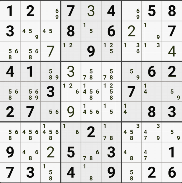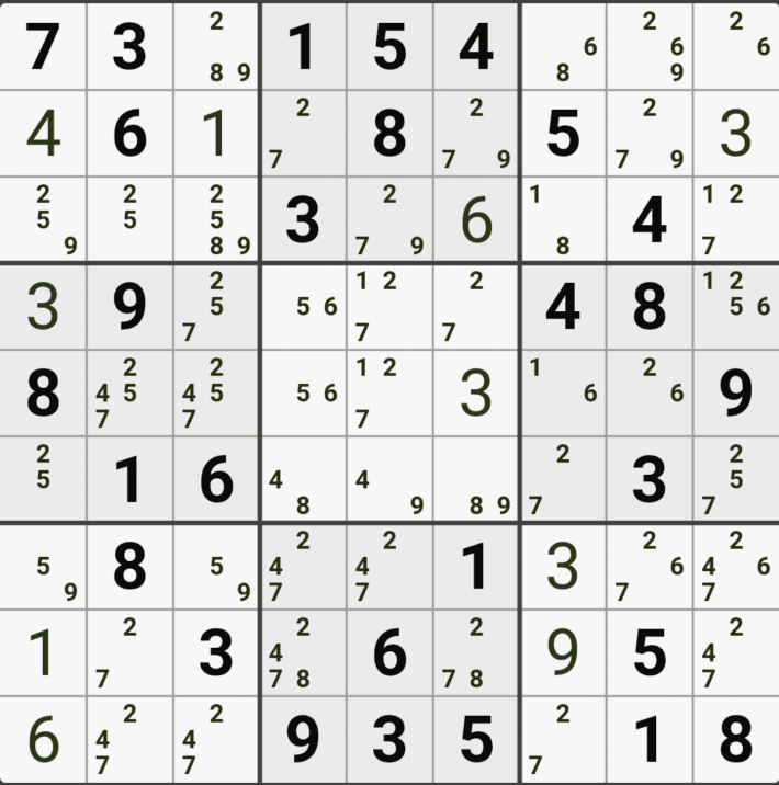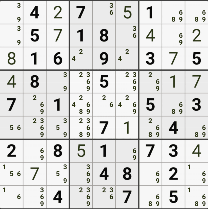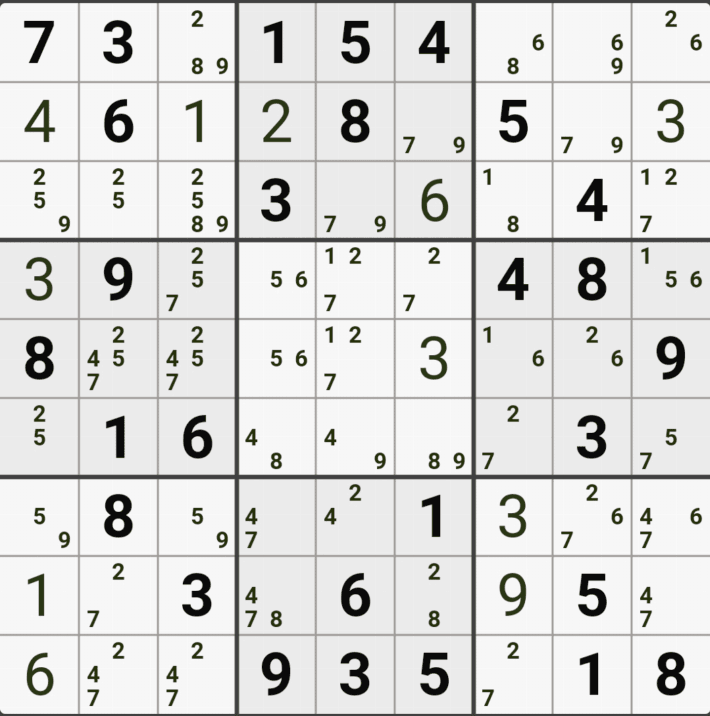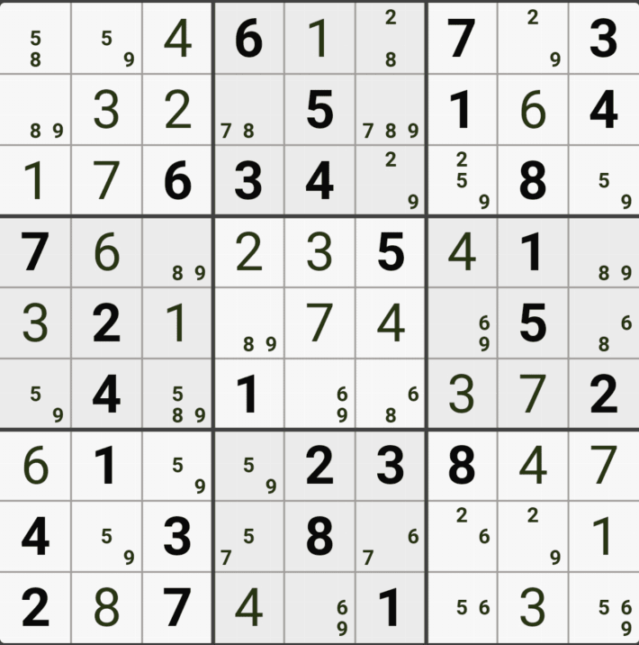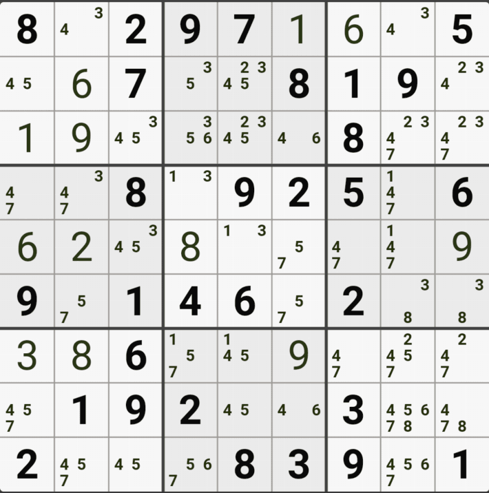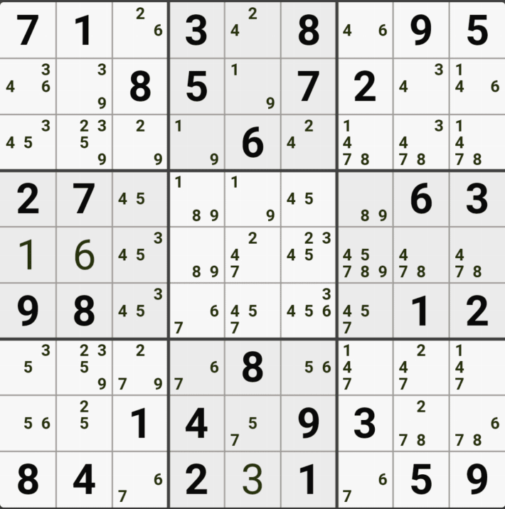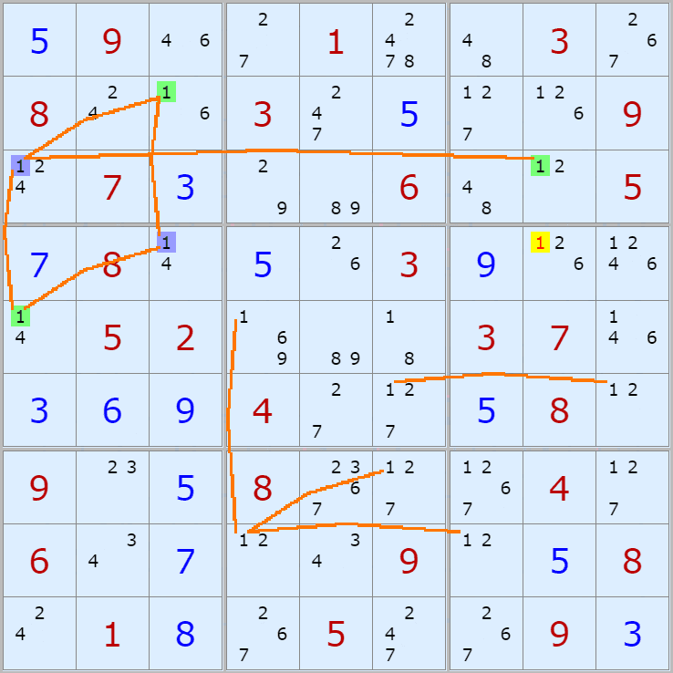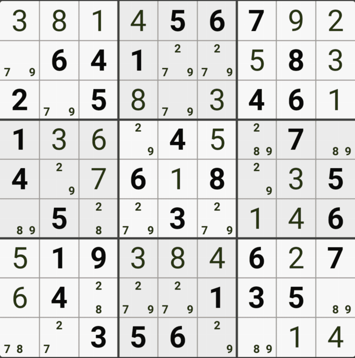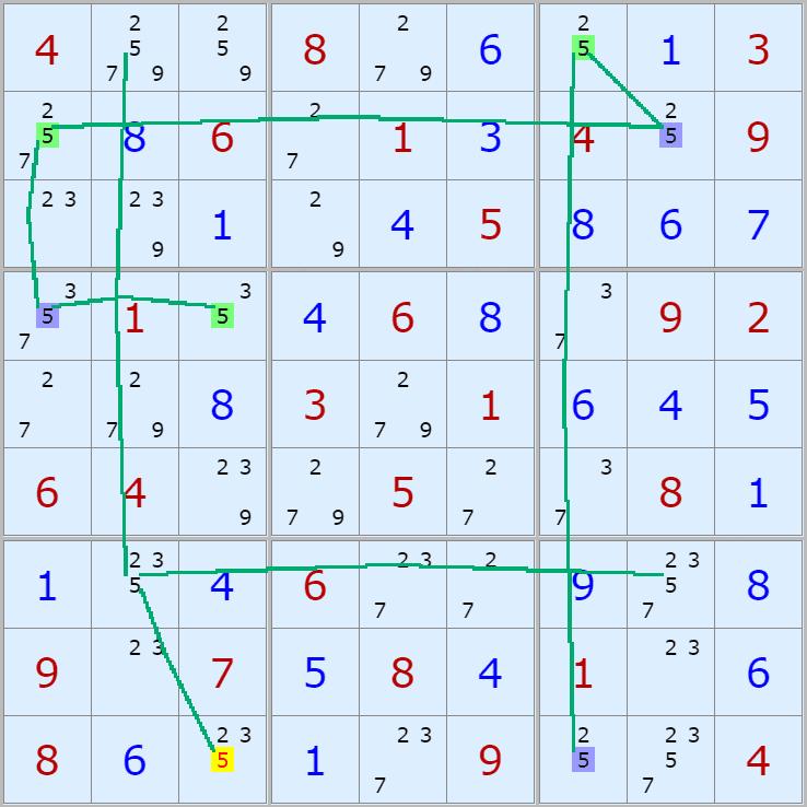 스도쿠를 좀 알아가다 보니까. 기술을 이해 하는 것도 중요하지만 공식이 쓰인 사례를 많이 봐야 한다고 생각한다. 의외로 싱글체인은 만나기가 어렵다. 그래서 잘 보이지 않는다.