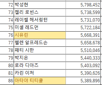 | 3036만$ [30] | 최나연 [9] | 1099만$ [24] |