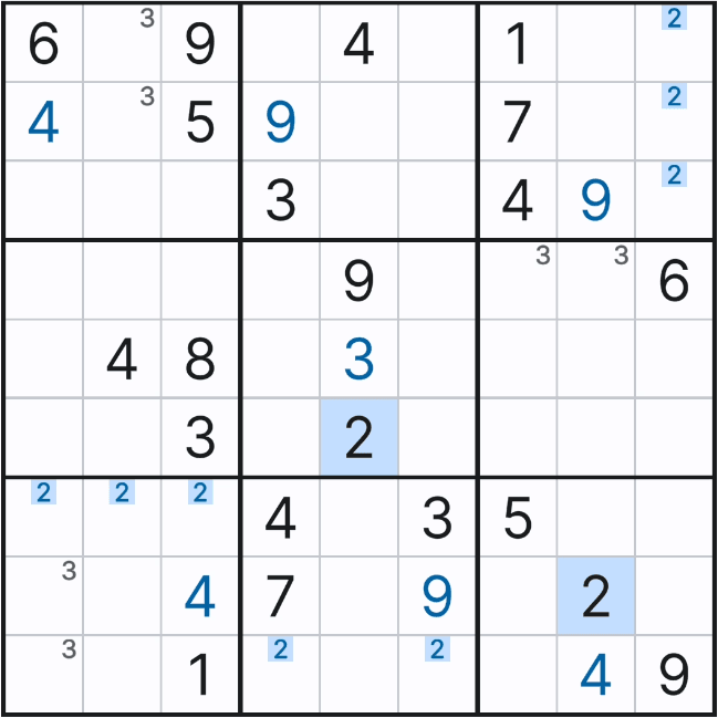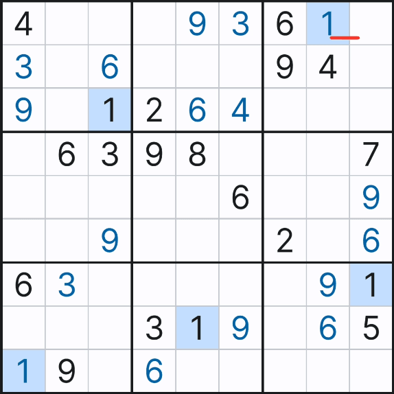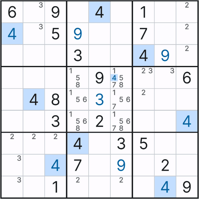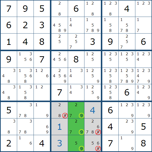 2열 8과 9행에 후보숫자 3 기입이 빠진 것 처럼 보인다.