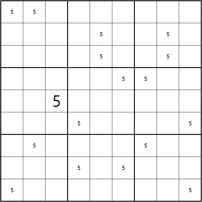 위의 그림을 살펴 보면 박스 1에 는 후보숫자 5가 3개 존재 한다.
